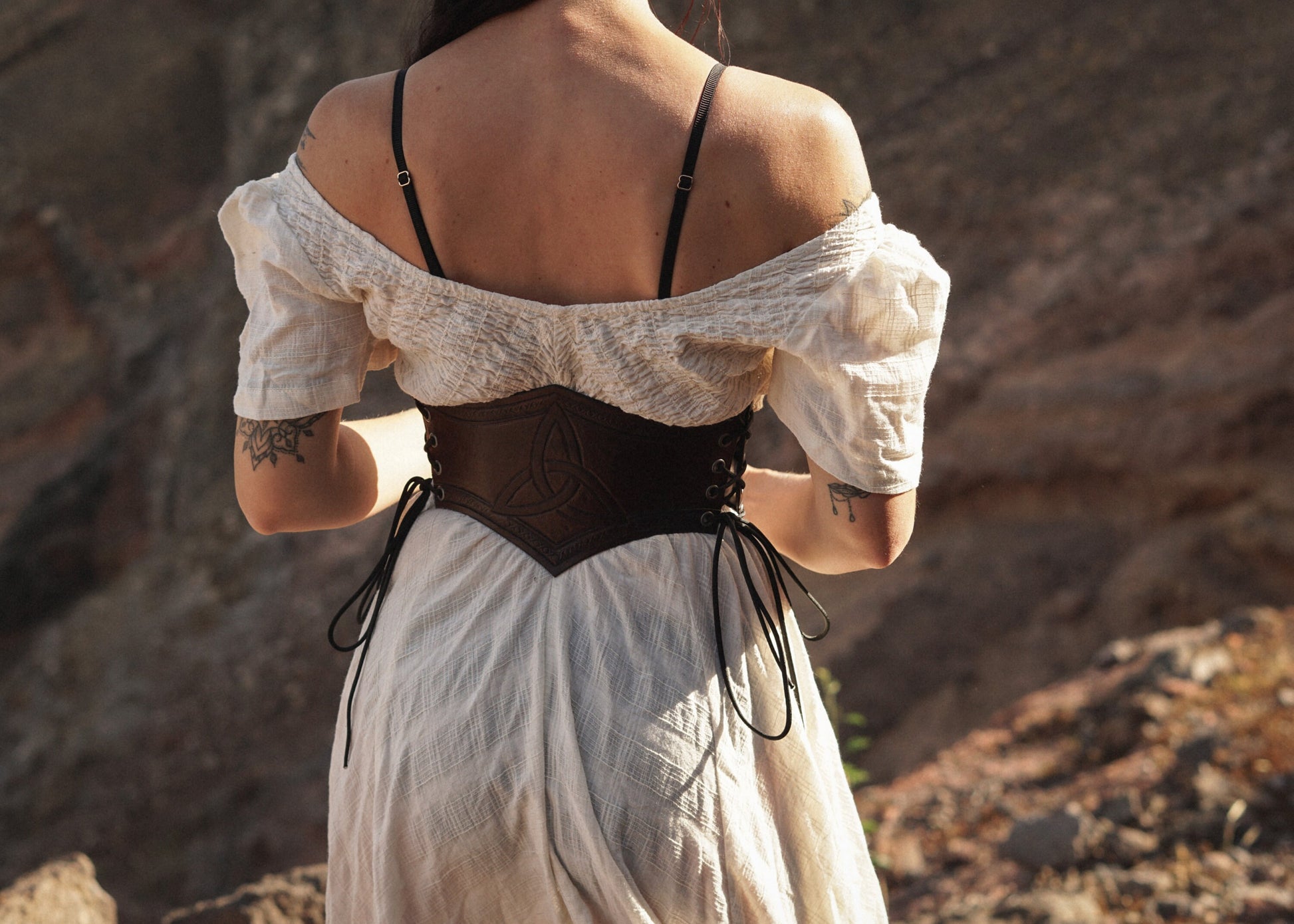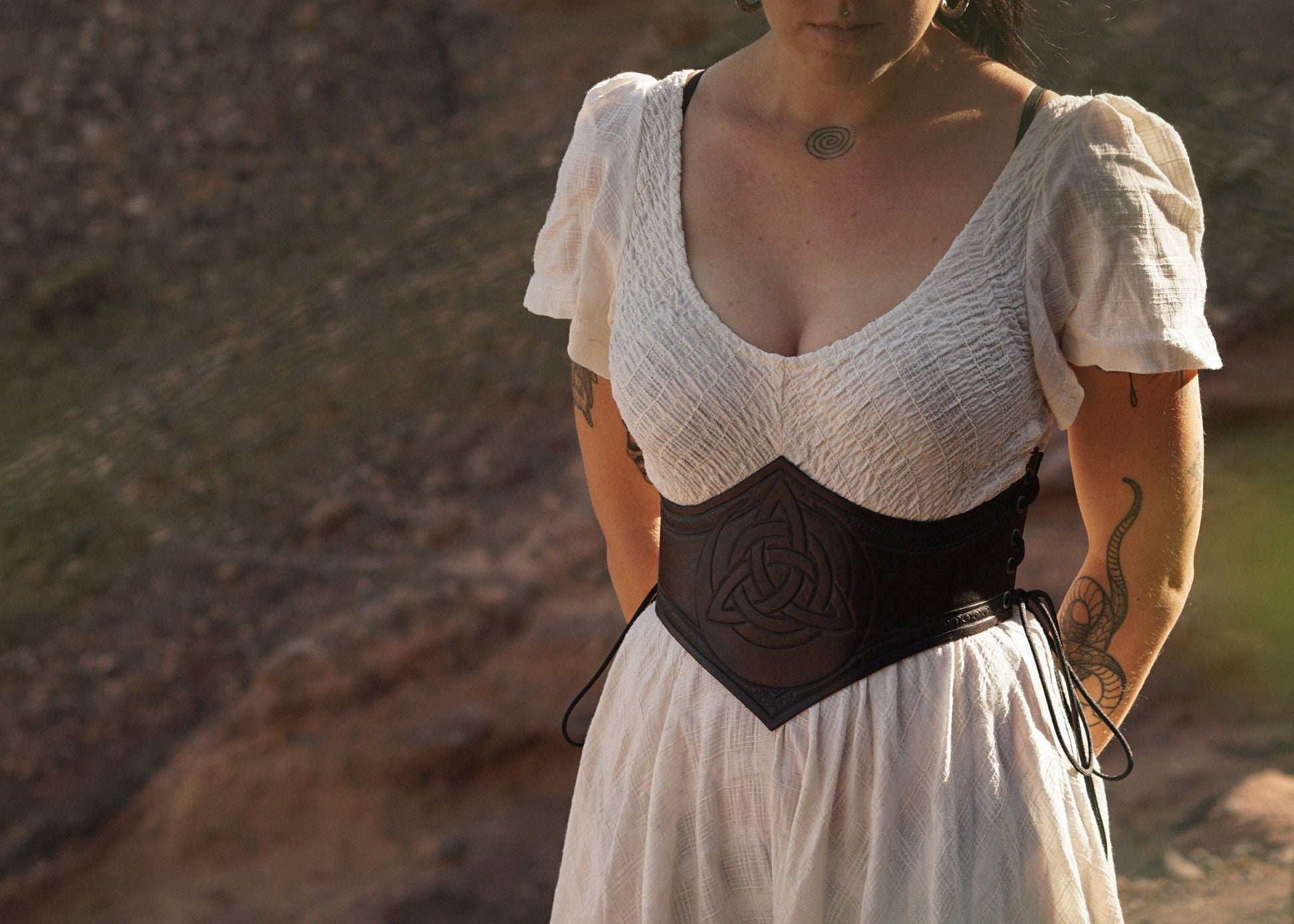 The design on this belt features a triquetra, a powerful Celtic symbol. You will find many different meanings and explanations. But a favourite of mine is life, death and rebirth.